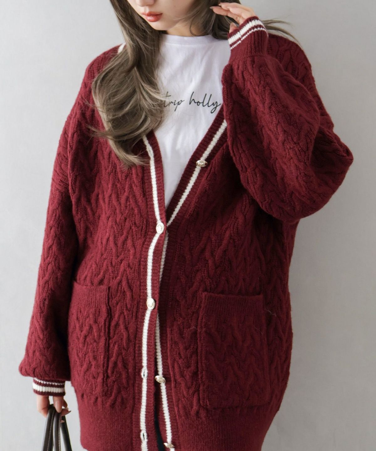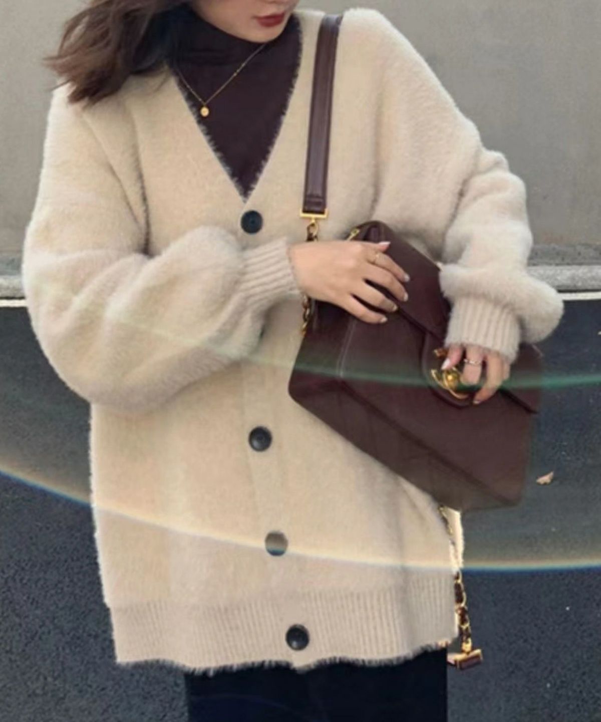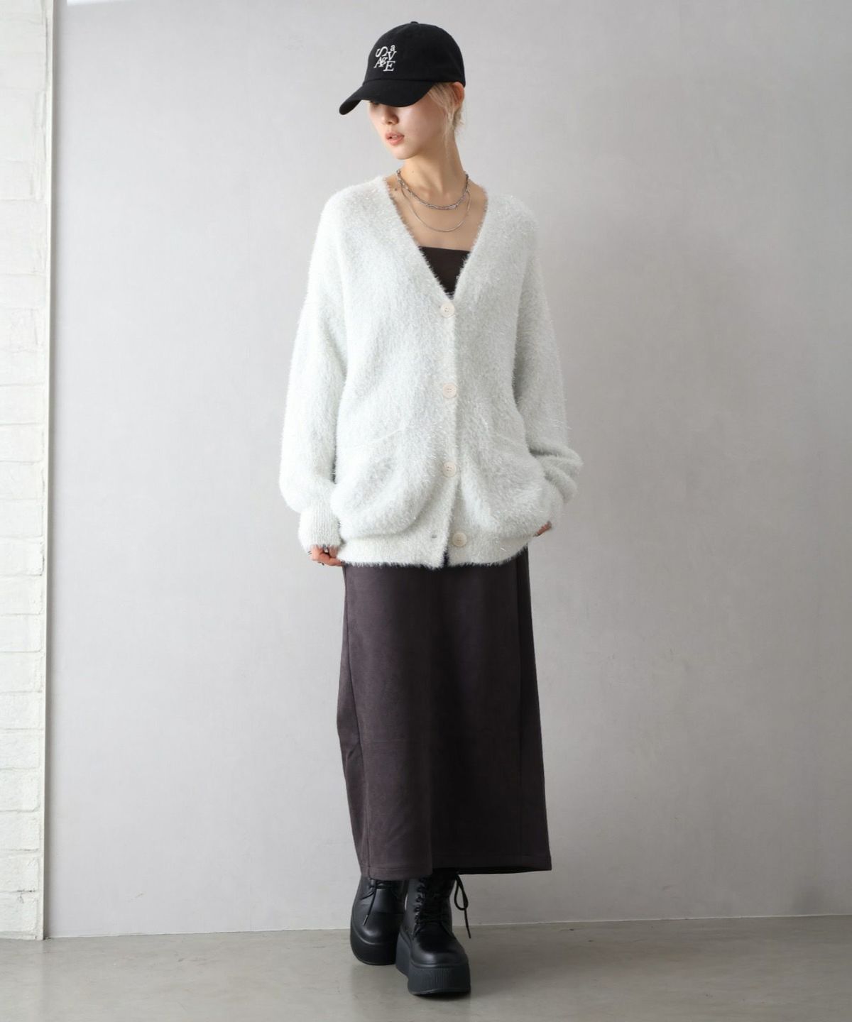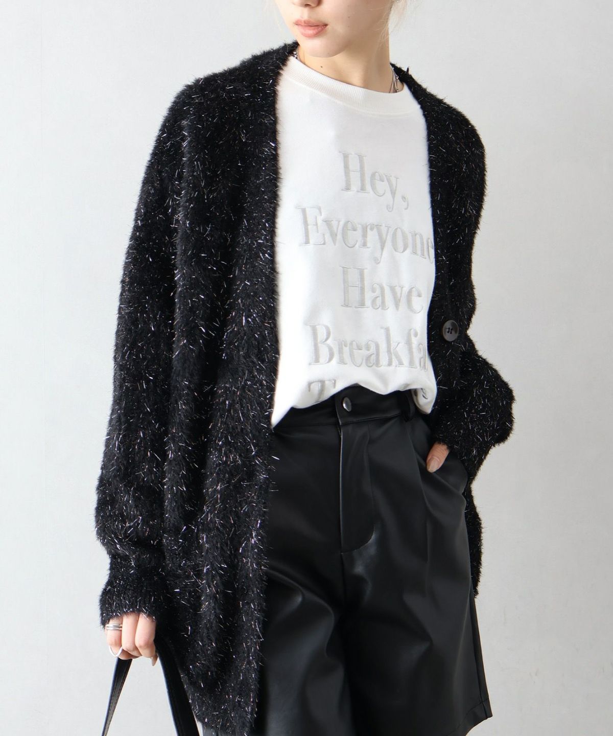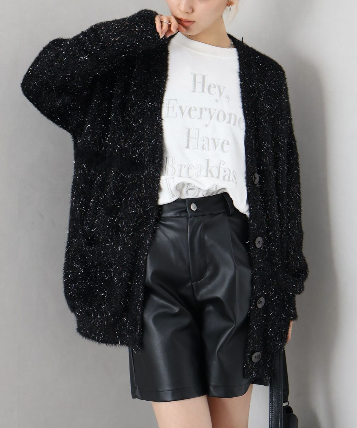 ラメシャギーロングVネックカーディガン