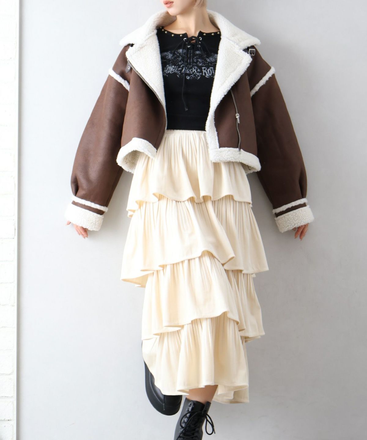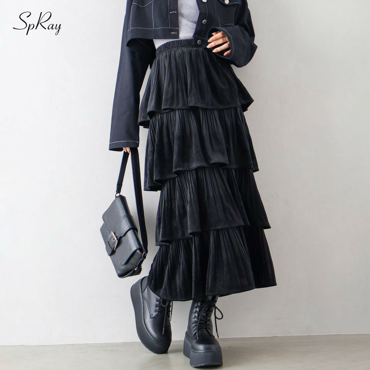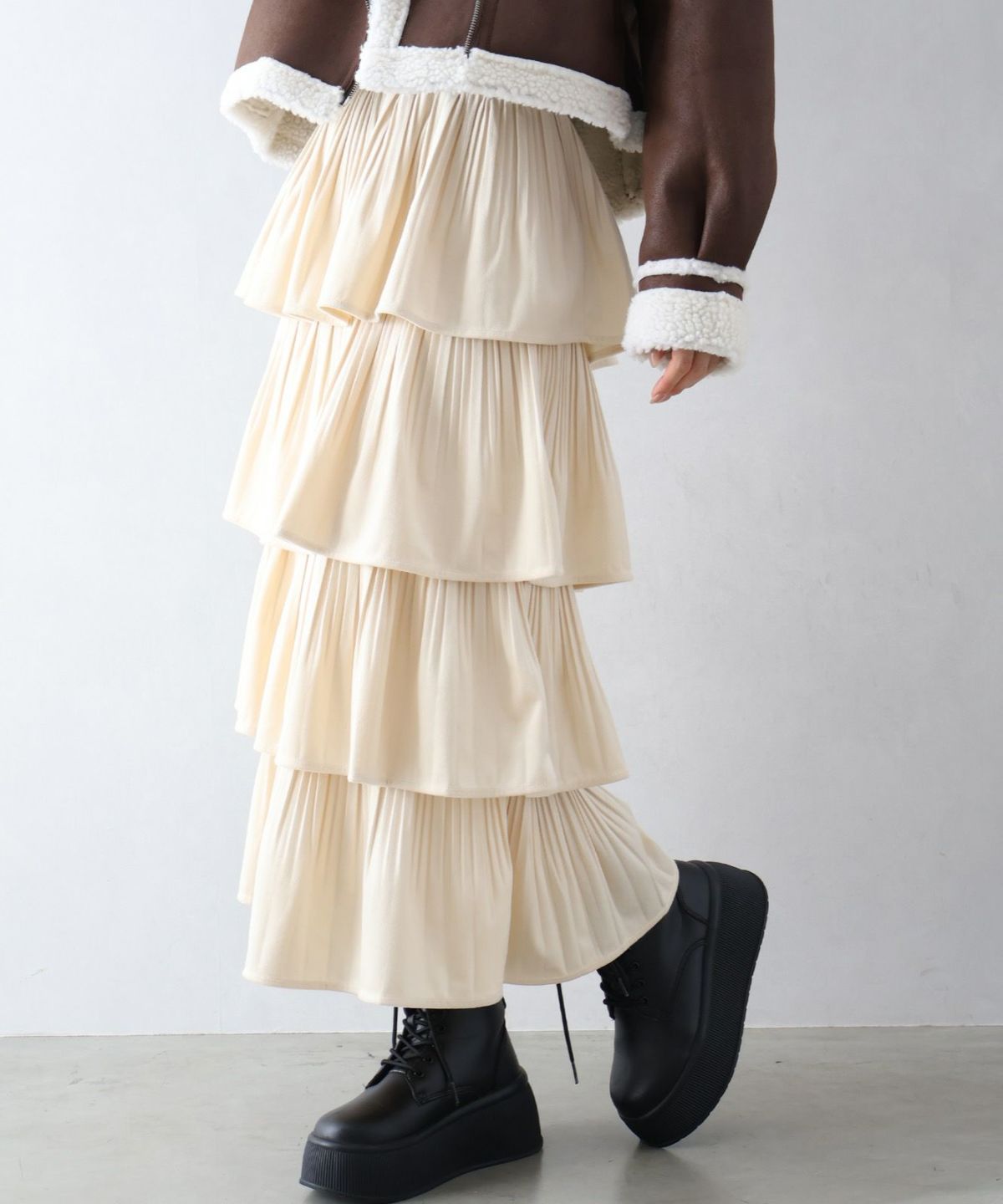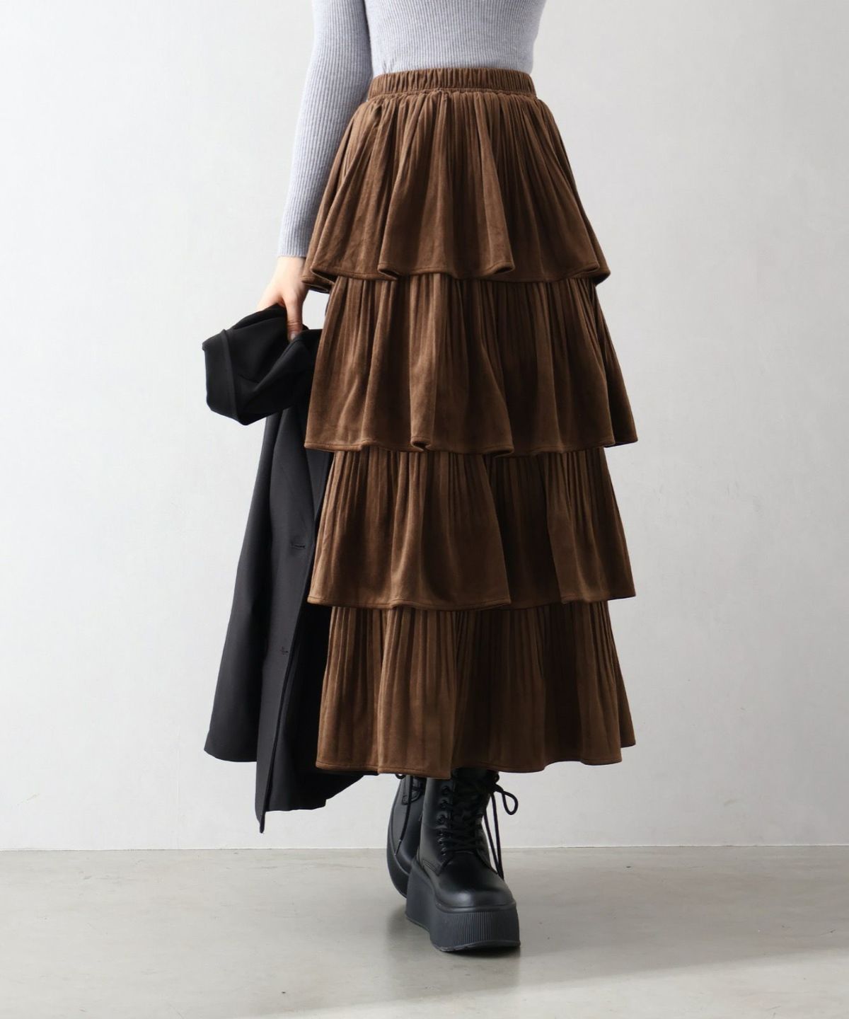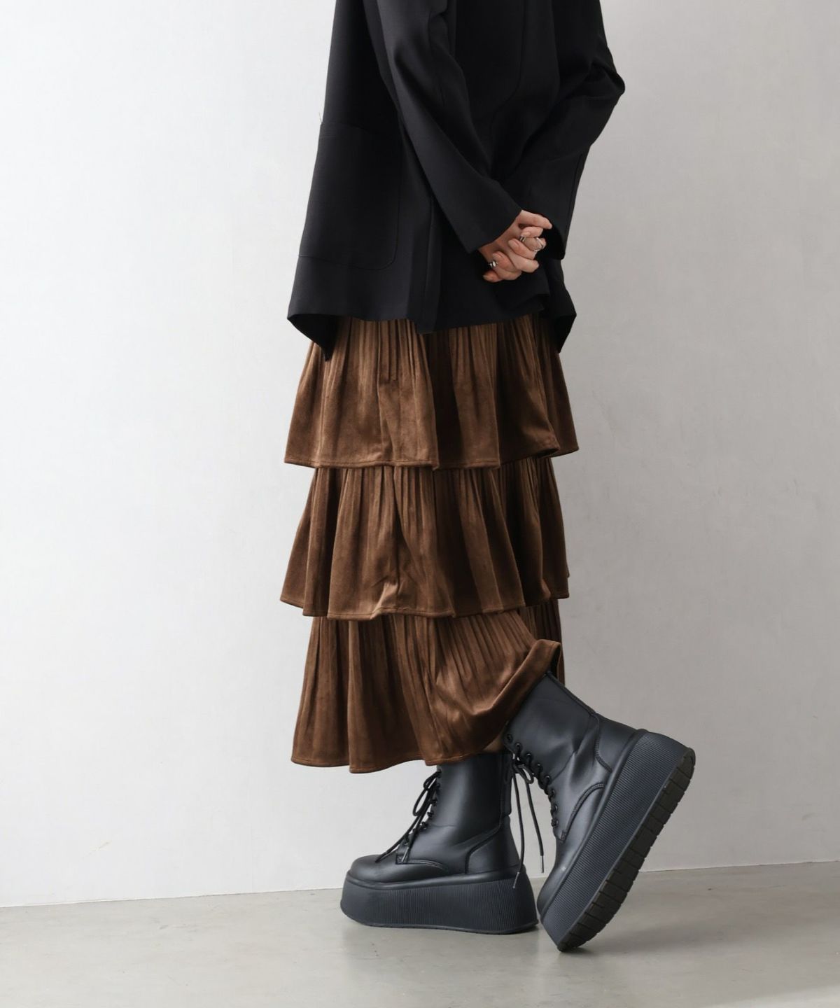 ベロアプリーツティアードロングスカート
