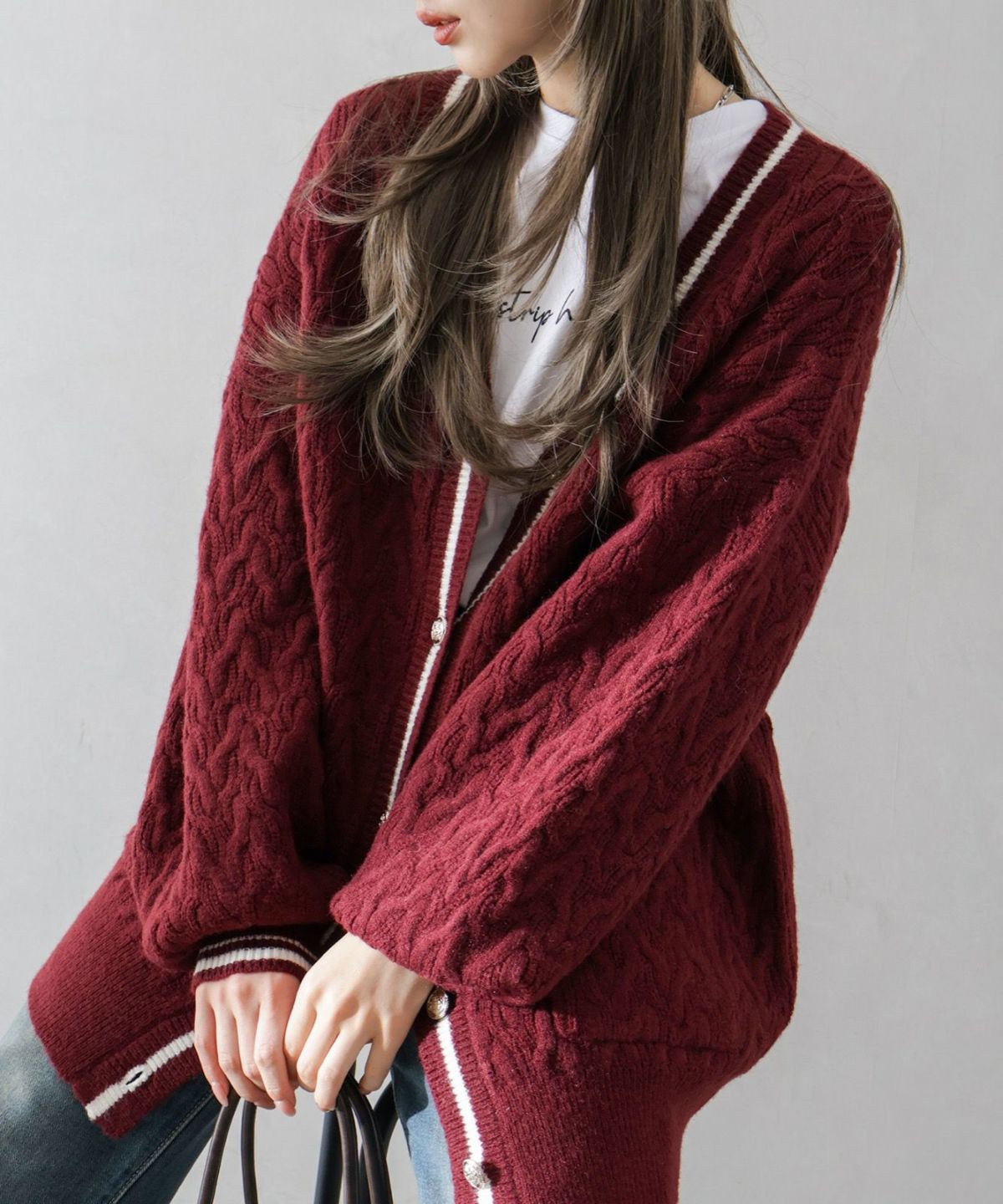 ケーブルラインカーディガン