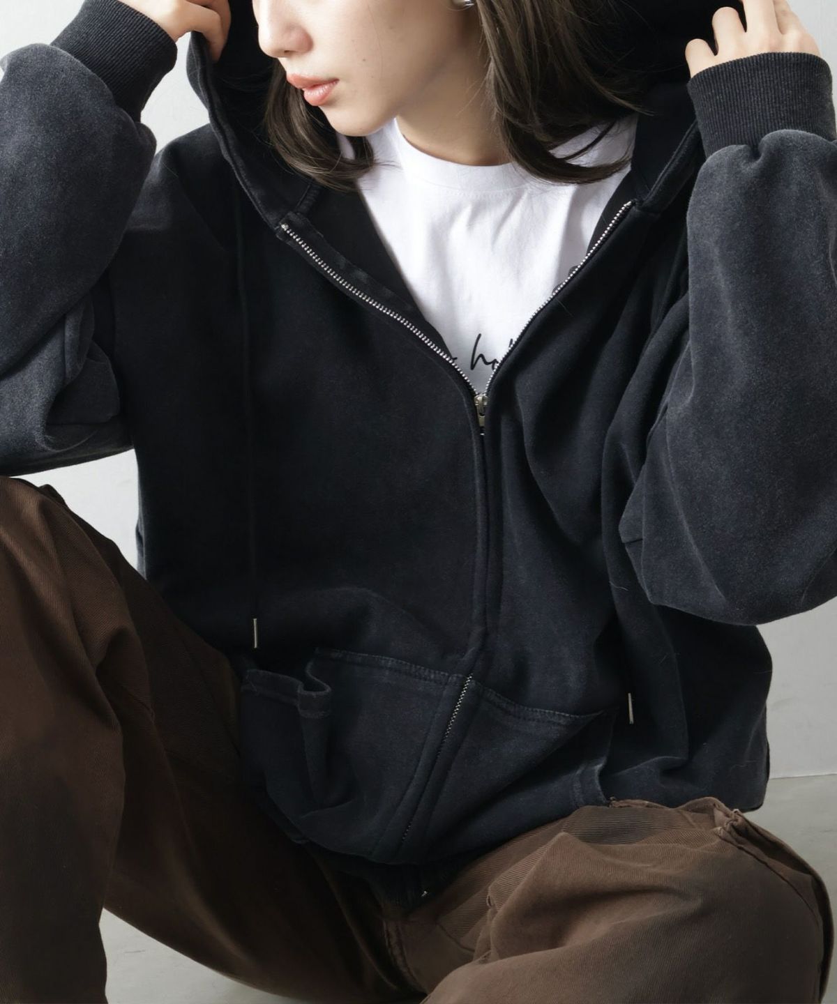 ピグメントジップパーカー